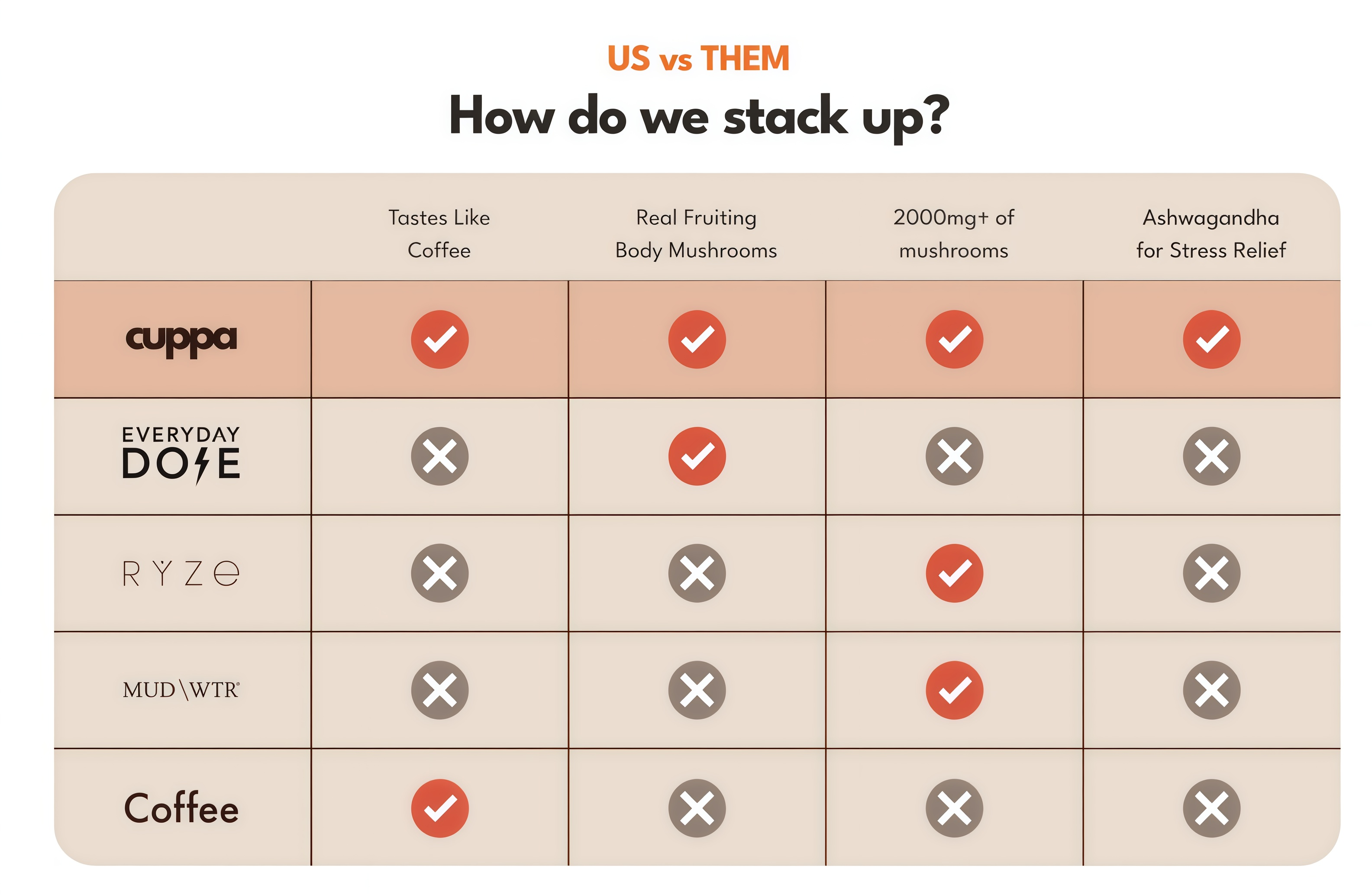 However, unlike your regular cup of coffee, cuppa adds L-Theanine, Ashwagandha and MCT to harness the power of caffeine to work for you, not against you. No jitters or crash, just stable, sustained energy all day. Oh and better sleep and mood too. You're welcome.